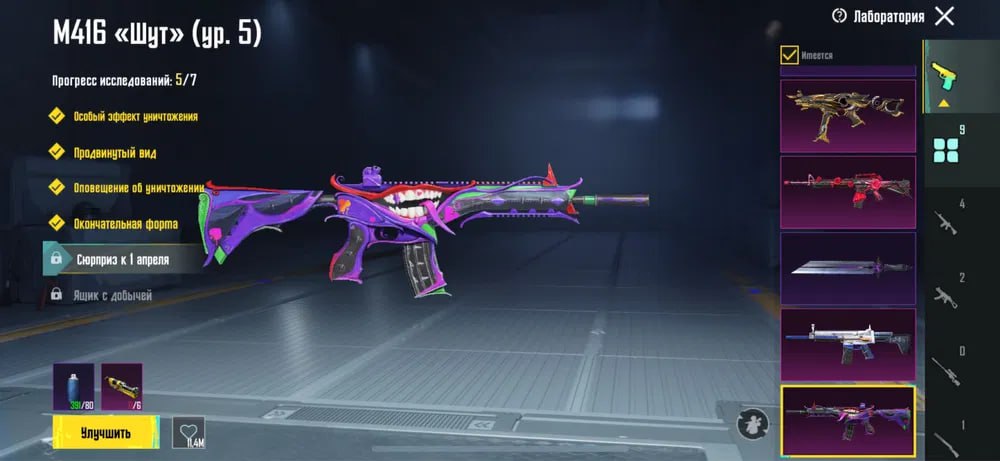 Есть два костюма Х, три скина бугатти, и 1500купонов удачи на новый скин в новой рулетке, очень много скинов на багги, уаз, дача, мото и т.д. Очень много мификов, шлемы, рюкзаки и т.д. М416 шут прокачана, юмп анухра прокачан